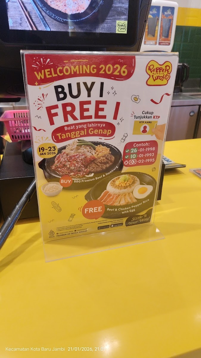 Pepper Lunch Jambi Town Square offers a compelling Japanese dining experience right in the heart of Kota Jambi. Known for its sizzling hot plates, the restaurant serves juicy steaks like "The Giant," enriched with creamy cheese that melts beautifully over fresh beans. The generous portions, especially the carbonara, highlight the brand’s commitment to hearty and satisfying meals. Customers rave about the balanced flavors—whether it’s the perfectly salted chicken karaage or the fresh, flaky salmon, each dish presents a delightful harmony of taste and texture. The cozy ambiance and attentive service make it ideal for both solo diners and groups seeking a comfortable place to enjoy quality Japanese cuisine. Frequent discounts add value, making each visit feel rewarding. Overall, Pepper Lunch Jambi Town Square stands out with its flavorful dishes, generous servings, and warm hospitality, promising a memorable dining experience that invites you to return and explore more of their menu.